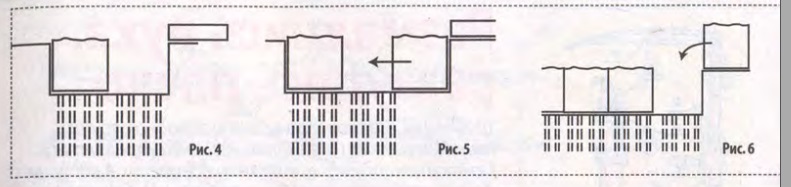 - переставляю доску на 30-35 см вглубь от края и вырубаю следующий кубик, аккуратно сдвигаю его на место первого, в новой траншее опять протыкаю дно вилами и передвигаю доску дальше (рис. 3 и 4). И так далее до конца размеченной грядки;